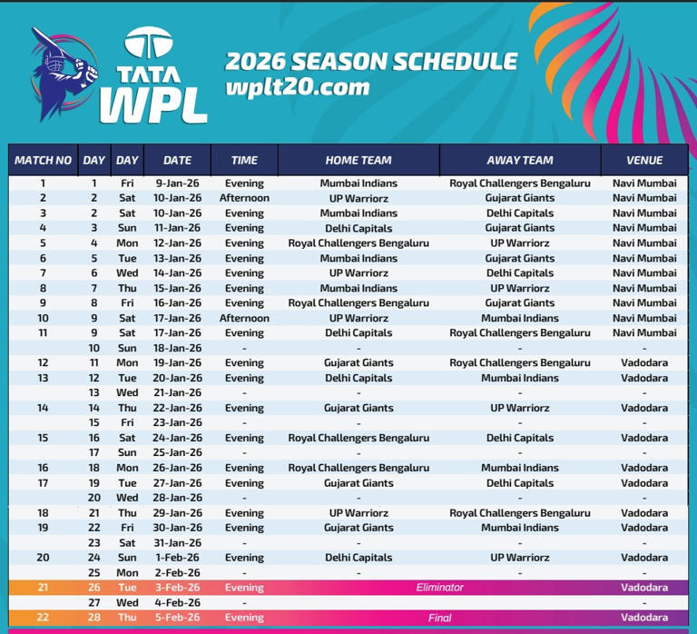 TATA WPL 2026 SCHEDULE