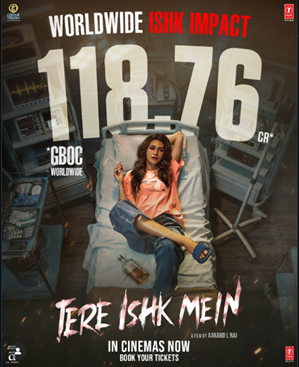 According to the makers, the opening week collection marked a significant milestone for the film. “Tere Ishk Mein” is predicted to continue its successful run despite new releases due to its strong audience reception, a steady full-house momentum. (Source: https://www.ptinews.com/story/entertainment/dhanush-kriti-sanon-s-%E2%80%98tere-ishk-mein%E2%80%99-crosses-rs-118-crore-worldwide-in-first-week/3160001)